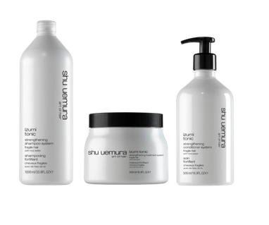• nachder Reinigung mit Izumi Tonic Shampoo, Feuchtigkeitspflege mit Conditioner oder Kur, auf die trockenen Haarlängen und-spitzen auftragen